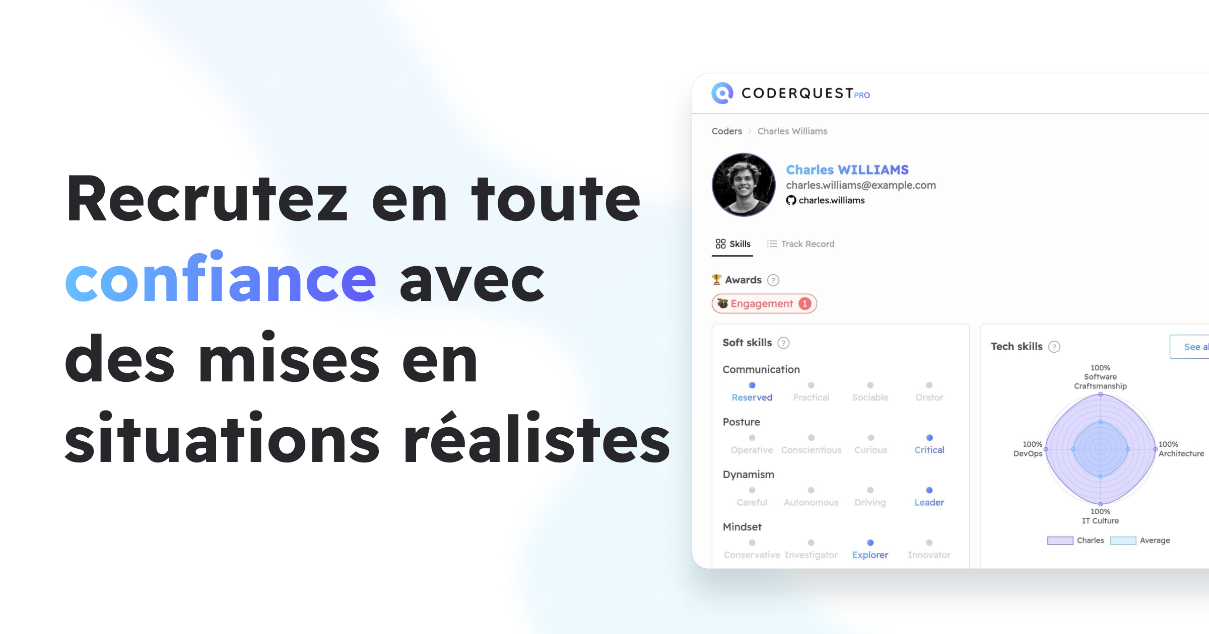 - CoderQuest is an innovative platform designed to evaluate the technical and soft skills of tech professionals in an immersive way. The idea behind CoderQuest is to create realistic work scenarios where Coders must solve problems, collaborate with others, and demonstrate qualities such as leadership and adaptability. This approach allows for a precise and relevant assessment of Coders' professional skills by observing their behaviours and actions in a simulated professional context rather than relying solely on theoretical tests or traditional interviews.